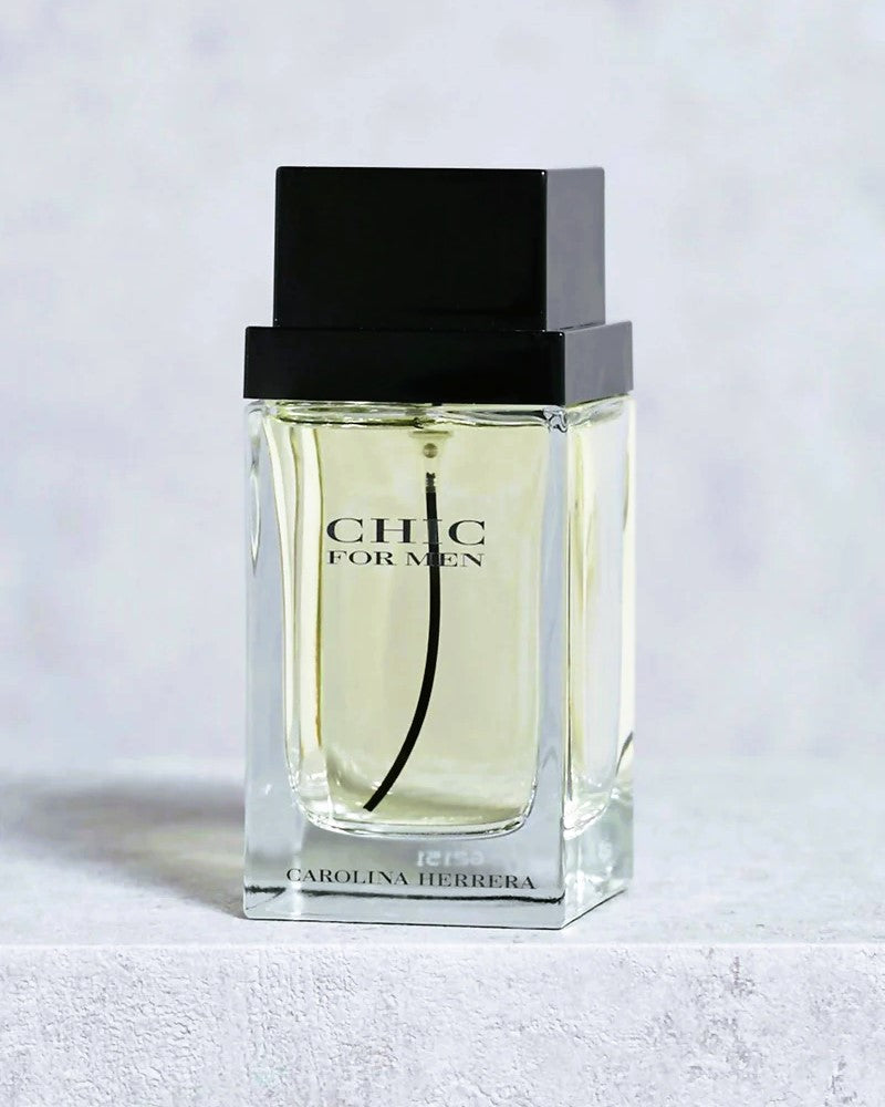 Chic for Men bottle is sophisticated in silhouette and topped with a crown of black. A clean, refined design serves as a blank canvas for the complexly unique fragrance it houses. Chic for Men is a fragrance of surprising contrasts, reflecting the creative man who wears it. At once refined and innovative, the scent opens with notes of fresh iced lemon and bergamot and evolves into a woody, oriental base.
