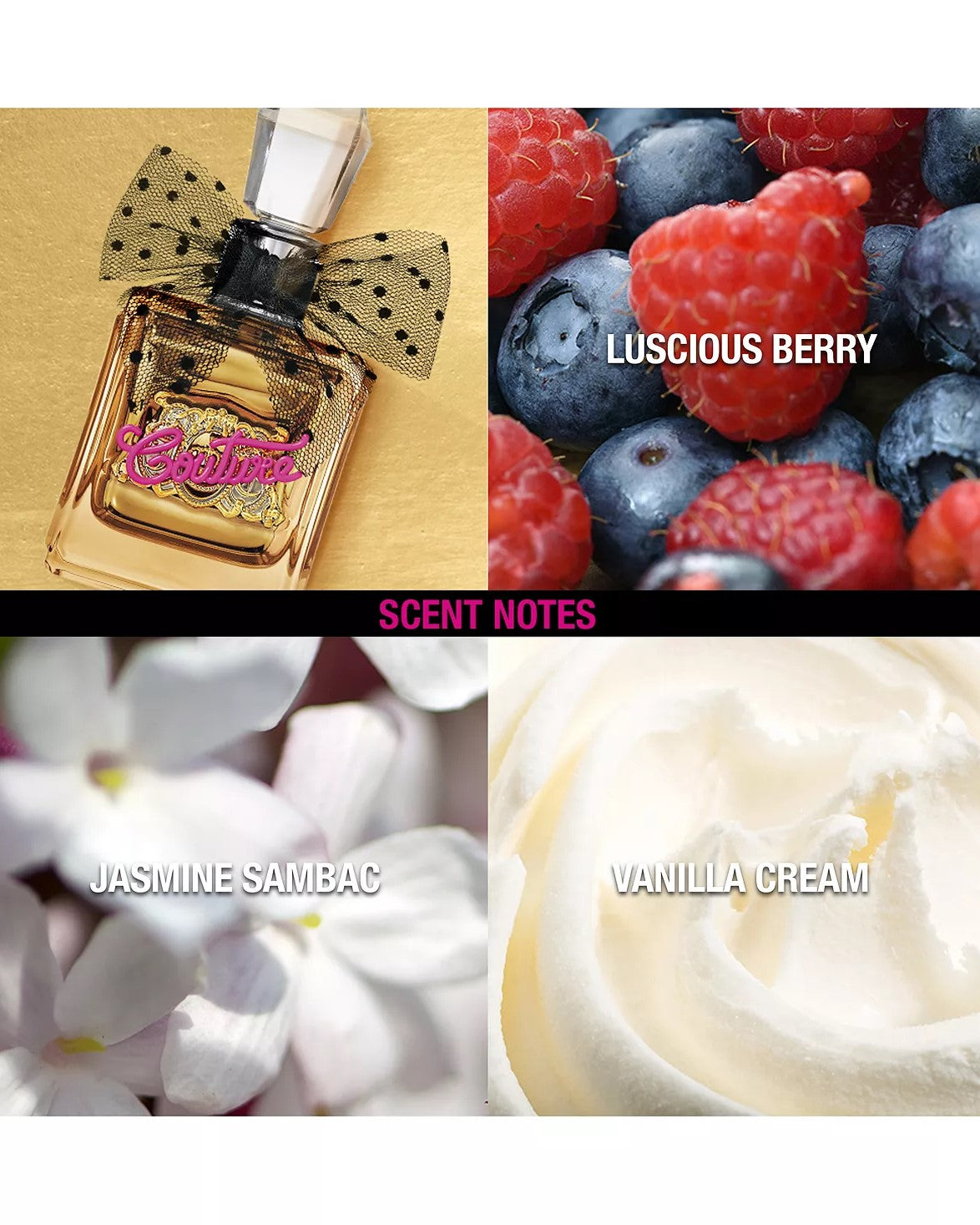 Couture overdose. She is couture all the way. Spinning an addictive web of glamour and decadence at the center of her golden world. For her, all that glitters is gold. Her fragrance, Viva la Juicy Gold Couture. A decadent rendition of Viva la Juicy that indulges the senses with luscious wild berries, a kiss of honeysuckle and a luxurious elixir of golden amber, melted caramel, and vanilla.